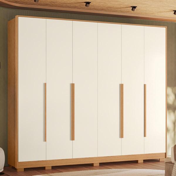 O guarda roupa tem um espaço interno amplo que traz um versatilidade na sua organização em mdp pintura uv gavetas com corrediças telescópicas puxadores em mdf revestido pés inclusos cabideiros em aluminio moldura em 15 mm interna 100% a cor do produto dimensões do produto: altura: 235 cm largura: 270 cm profundidade: 56 cm informações complementares: cor: freijó/off white material principal: mdp acompanha espelho: não cabideiro: sim, em aluminio (2) gavetas: sim , com corrediças telescópicas (6) prateleiras: sim (10) nichos: sim (12) portas: sim (6) puxadores: sim (6) pés: sim, em abs (8) tipo de pintura: uv itens inclusos: - 01 guarda roupa; - kit completo para montagem, manual detalhado de instruções para montagem. Garantia: 3 meses contra defeito de fabricação. Informações adicionais: - fotos meramente ilustrativas do produto no ambiente. - os objetos que ambientam as fotos não acompanham o produto; - verificar descrição e tamanho do produto antes da compra. - avaliar a mercadoria no ato do recebimento e recusar em caso de divergência ou avarias. - limpar com flanela ou pano macio seco, não utilizar produtos abrasivos, desengordurantes, álcool ou solvente. Não expor o produto diretamente à luz solar e à umidade. * sugerimos a contratação de um montador profissional para a montagem do produto. Não nos responsabilizamos por avarias causadas no ato da montagem. * não nos responsabilizamos pela montagem e desmontagem do produto, assim como os custos gerados nestas situações. * não nos responsabilizamos por subir escadas, corredores e elevadores ou transporte por guincho em apartamentos.