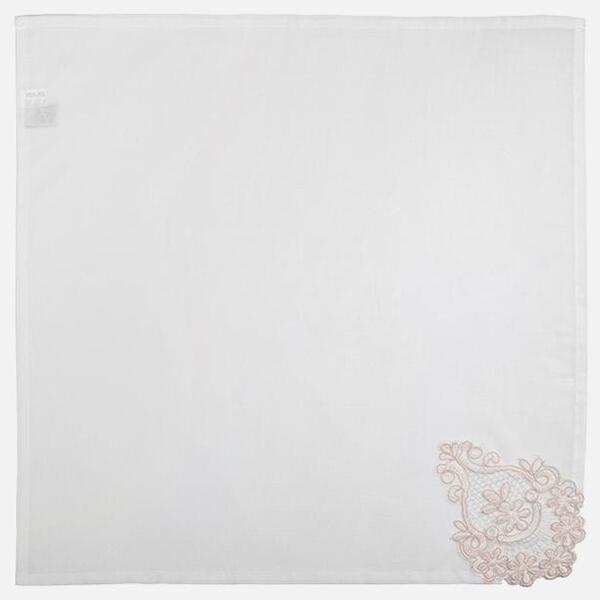 Guardanapo de tecido poliéster "off white" com acabamento bordado em renda em salmão.cor: off white material: poliéste