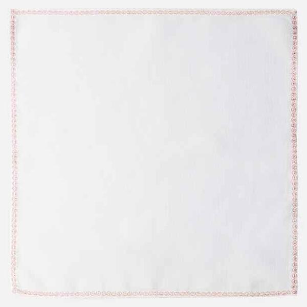 Guardanapo de tecido 50% algodão e 50% linho na cor branca com acabamento bordado na cor rosa.cor: branco material: linho e algodão