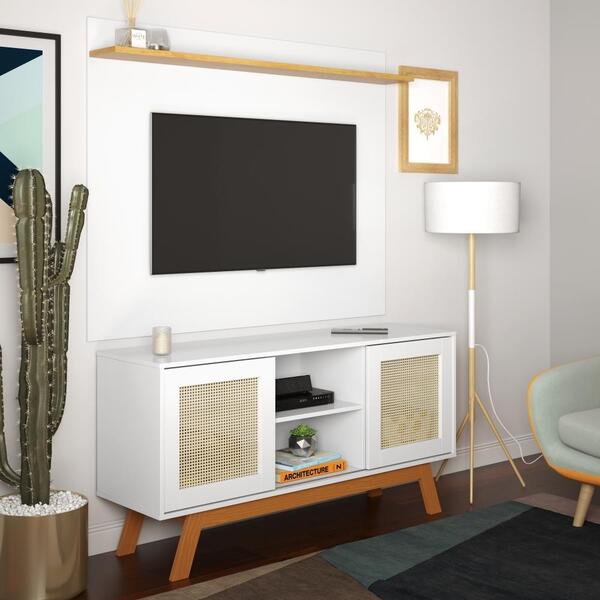 O home é perfeito para você, deixando sua sala mais moderna. O rack é produzido em mdf de 15mm, possui 2 portas de correr com detalhe rattan sintético, 1 prateleira e pés em madeira pinus. Suportatvs de até 55" polegadas. O painel é produzido em mdf de 12mm e possui 1 prateleira. Suportatvs de até 50"polegadas dimensões do rack: altura:68 cm largura:1,36 cm comprimento:40 cm dimensões do painel: altura:101,8cm largura:136cm comprimento:18cm informações do rack: cor: branco material: mdf de 15mm portas: sim (2) de correr prateleiras: sim (1) pés: sim (4) em madeira pinus informações do painel: cor: branco material: mdf de 12mm prateleira: sim (1) superior itens inclusos: 01 rack; 01 painel. Kit completo para montagem e manual de instruções. Garantia: 3 meses contra defeito de fabricação. Informações complementares: - fotos meramente ilustrativas do produto no ambiente. - os objetos que ambientam as fotos não acompanham o produto; - verificar descrição e tamanho do produto antes da compra. - avaliar a mercadoria no ato do recebimento e recusar em caso de divergência ou avarias. - mantenha as informações de contato e endereço de entrega atualizados para entrarmos em contato caso necessário. - limpar com flanela ou pano macio seco, não utilizar produtos abrasivos, desengordurantes, álcool ou solvente. Não expor o produto diretamente à luz solar e à umidade. * sugerimos a contratação de um montador profissional para a montagem do produto. Não nos responsabilizamos por avarias causadas no ato da montagem. * não nos responsabilizamos pela montagem e desmontagem do produto no ato da entrega e devolução, assim como os custos gerados nestas situações. * a transportadora entregará o produto no andar térreo do endereço de entrega. * não nos responsabilizamos por subir escadas, corredores e elevadores ou transporte por guincho em apartamentos.