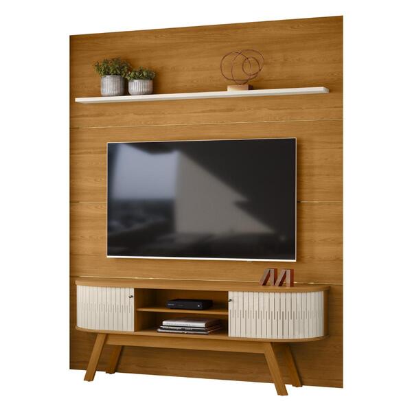 Essa composoção de painel com rack possui características que transmitem elegância para a sua sala de estar. Testado para tvs de até 75 polegadas. Feito em mdp 12/25mm. Contém 2 portas curvas deslizantes, 2 prateleiras e detalhes em filetes dourados. Dimensões do home: altura: 244 cm largura: 208 cm profundidade: 38 cm informações do home: cor: cinamomo/off white prateleiras: sim (2) portas: sim (2) deslizamento, mdf led:não ripado: não passa fio: sim (1) puxadores: sim (2) pés: sim (4) comporta tvs de 75 polegadas material principal: mdp 12/25mm itens inclusos: 01 home theater manual de montagem kit completo para montagem e manual de instruções garantia: 3 meses contra defeito de fabricação informações adicionais: - fotos meramente ilustrativas do produto no ambiente. - os objetos que ambientam as fotos não acompanham o produto; - verificar descrição e tamanho do produto antes da compra. - avaliar a mercadoria no ato do recebimento e recusar em caso de divergência ou avarias. - mantenha as informações de contato e endereço de entrega atualizados para entrarmos em contato caso necessário. - limpar com flanela ou pano macio seco, não utilizar produtos abrasivos, desengordurantes, álcool ou solvente. Não expor o produto diretamente à luz solar e à umidade. * sugerimos a contratação de um montador profissional para a montagem do produto. Não nos responsabilizamos por avarias causadas no ato da montagem. * não nos responsabilizamos pela montagem e desmontagem do produto no ato da entrega e devolução, assim como os custos gerados nestas situações. * a transportadora entregará o produto no andar térreo do endereço de entrega. * não nos responsabilizamos por subir escadas, corredores e elevadores ou transporte por guincho em apartamentos.