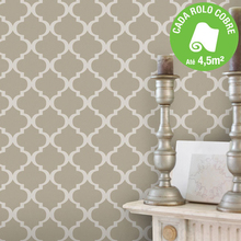 O estilo colonial surgiu a partir da combinação da sofisticação com a rusticidade. Cores neutras, materiais naturais e elementos requintados compõem ambientes nesse estilo de decoração, como este closet planejado para casal. O papel de parede vinilizado foi escolhido com uma estampa sofisticada e combina com o tapete macio e convidativo. Esses elementos também aquecem o ambiente e o deixam mais aconchegante.