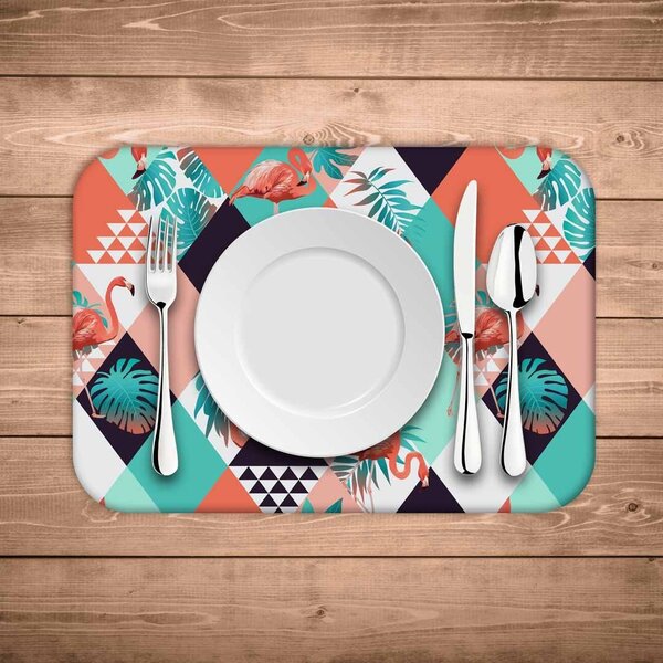 Jogo americano wevans flamingos triângulos kit com 6 pçs -     # jogos americanos são perfeitos para complementar a decoração do ambiente. descontrair é tudo de bom, não é? e você pode fazer isso na decoração da sua casa também. Uma dica bacana para isso, é extravasar...