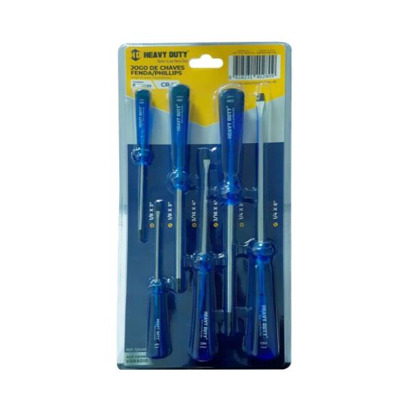 O jogo chave fenda/phillips 6 peças - 1 jogo da heavy duty foi desenvolvido para oferecer versatilidade e eficiência em diversas aplicações profissionais e domésticas. Composto por 6 peças este conjunto combina chaves de fenda e phillips em diferentes tamanhos garantindo encaixe preciso e segurança no manuseio de parafusos.