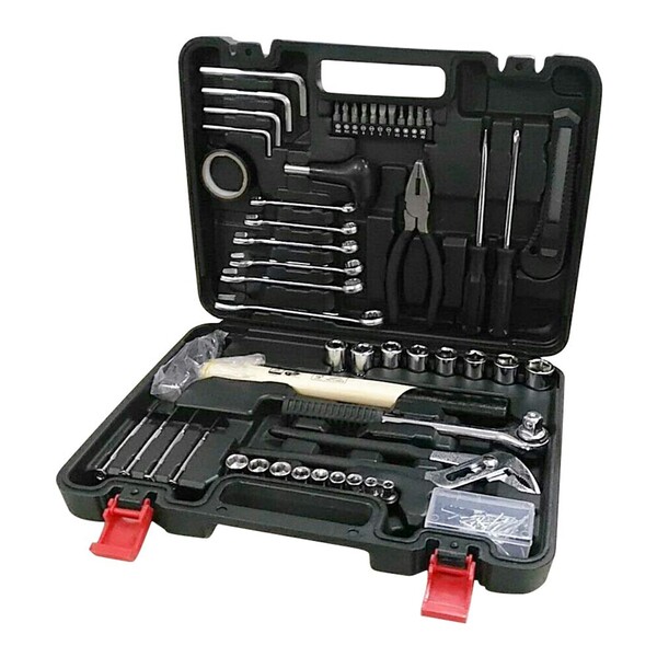 | Conteúdo da Embalagem | Alicate de bomba de água de 1 unidade de 225 mm; Alicate combinado de 1 unidade de 160 mm; Chave combinada de 6 unidades, tamanho: 8-10-12-13-14-17mm; Chave sextavada de 4 unidades, tamanho: suporte de bits de 3-4-5-6mm 1 unidade; Fita isolante de 1 unidade; 11pcs bits, tamanho: HEX3-4-5mm, PH0-PH1-PH2, SL4-5-6-7mm, adaptador de 1 unidade; 9pcs 1/4'sockets,tamanho:5-6-7-8-9-10-11-12-13mm; 8pcs soquetes de 1/2', tamanho: 10-11-12-13-14-15-17-19mm; Ferramentas de hardware 90pcs; 1 peça de martelo mecânico de 300g; Chave de fenda de precisão 4pcs, tamanho: PH0/2.0/PH1/2.4mm; 1 unidade de alça de catraca de 1/2'; Chaves de fenda 2pcs, tamanho: SL6x100mm,PH2x100mm; 1 faca utilitária |
