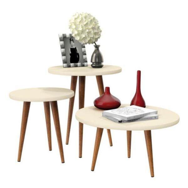 Jogo de mesas legs - off whitejogo de mesas legs - mesa de centro, mesa lateral e mesa de apoio - off whiteo jogo de mesas legs vai deixar tudo organizado, bem decorado, e totalmente harmonioso.este modelo legs conta com o melhor do estilo retrô, com design diferenciado possui pés no estilo palito, ressaltando ainda mais o conceito vintage.seu tampo é de 25mm com pés em madeira maciça e suporte de aço para fixação dos pés, com acabamento na parte de baixo deixa o móvel com mais qualidade e sofisticação.com estas mesas você pode compor qualquer ambiente, contrastando os estilos ou ampliando ainda mais o conceito retrô em todo o ambiente.informações do produto:- mesa de centroaltura: 39 cmlargura: 67 cmcomprimento: 67 cm- mesa lateralaltura: 48,5 cmlargura: 44 cmcomprimento: 44 cm- mesa de apoioaltura: 63 cmlargura: 53 cmcomprimento: 53 cmitens inclusos:01 mesa de centro, 01 mesa lateral e 01 mesa de apoio.kit completo para montagem, manual detalhado de instruções para montagem.garantia:3 meses contra defeito de fabricação.informações complementares:- fotos meramente ilustrativas do produto no ambiente.- os objetos que ambientam as fotos não acompanham o produto;- verificar descrição e tamanho do produto antes da compra.- avaliar a mercadoria no ato do recebimento e recusar em caso de divergência ou avarias.- mantenha as informações de contato e endereço de entrega atualizados para entrarmos em contato caso necessário.- limpar com flanela ou pano macio seco, não utilizar produtos abrasivos, desengordurantes, álcool ou solvente. Não expor o produto diretamente à luz solar e à umidade.* sugerimos a contratação de um montador profissional para a montagem do produto. Não nos responsabilizamos por avarias causadas no ato da montagem.* não nos responsabilizamos pela montagem e desmontagem do produto no ato da entrega e devolução, assim como os custos gerados nestas situações.* a transportadora entregará o produto no andar térreo do endereço de entrega.* não nos responsabilizamos por subir escadas, corredores e elevadores ou transporte por guincho em apartamentos.
