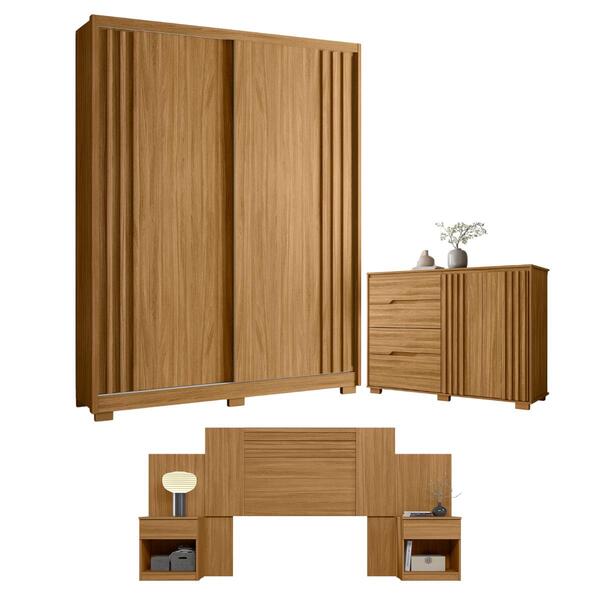 Este conjunto é perfeito para deixar seu quarto perfeito e organizado. o guarda roupa com 2 portas perfeitas para guardar e organizar suas roupas, caixas ou sapatos. a cômoda contém porta com acabamento ripado, possui quatro gavetas com espaço amplo.o conjunto de cabeceira segue o mesmo design elegante com acabamento ripado e verniz fosco.os três produtos são produzidos em mdp. Dimensão do guarda roupa: altura: 230 cm largura: 175 cm profundidade: 52 cm informação do produto: cor: freijó gavetas: sim (3) portas: sim (2) prateleiras: sim (6) pés: sim (6) cabideiros: sim (2) acompanha espelho: sim dimensões da cômoda: altura: 105 cm largura: 147 cm profundidade: 47 cm informações do produto: cor: freijó portas: sim (2) prateleira: sim (1) gavetas: sim (4) dimensões do conjunto de cabeceira: altura: 115 cm largura: 235 cm profundidade: 39 cm informações do produto: cor: freijó portas: sim (2) prateleira: sim (1) gavetas: sim (4) itens inclusos:1 guarda roupa1 cômoda1 cabeceirakit completo para montagem e manual de instruções garantia: 3 meses contra defeito de fabricação informações adicionais: - fotos meramente ilustrativas do produto no ambiente. - os objetos que ambientam as fotos não acompanham o produto; - verificar descrição e tamanho do produto antes da compra. - avaliar a mercadoria no ato do recebimento e recuse em caso de divergência ou avarias. - mantenha as informações de contato e endereço de entrega atualizados para entrarmos em contato caso necessário. - limpar com flanela ou pano macio seco, não utilizar produtos abrasivos, desengordurantes, álcool ou solvente. Não expor o produto diretamente à luz solar e à umidade. * sugerimos a contratação de um montador profissional para a montagem do produto. Não nos responsabilizamos por avarias causadas no ato da montagem. * a transportadora entregará o produto no andar térreo do endereço de entrega.