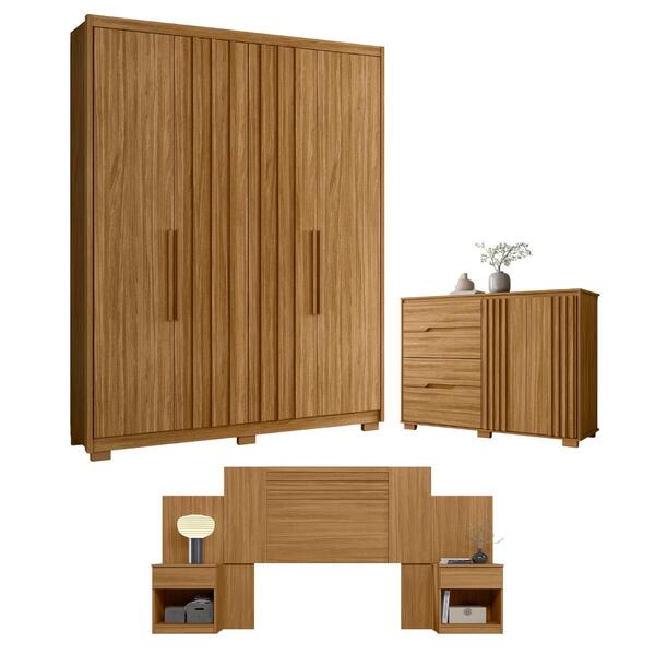 Este conjunto é perfeito para deixar seu quarto perfeito e organizado. o guarda roupa com 4 portas perfeitas para guardar e organizar suas roupas, caixas ou sapatos. a cômoda contém porta com acabamento ripado, possui quatro gavetas com espaço amplo.o conjunto de cabeceira ...