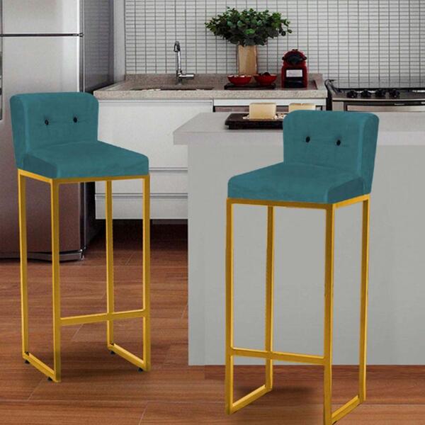 Kit 02 banqueta alta encosto lucca industrial cozinha ferro dourado botão preto suede azul turquesa -ahazzo móveisbanqueta lucca - ahazzo móveis ideal para agregar elegância e sofisticação ao seu ambiente de forma prática e eficaz. Características: - largura: 35 cm; - altura:...