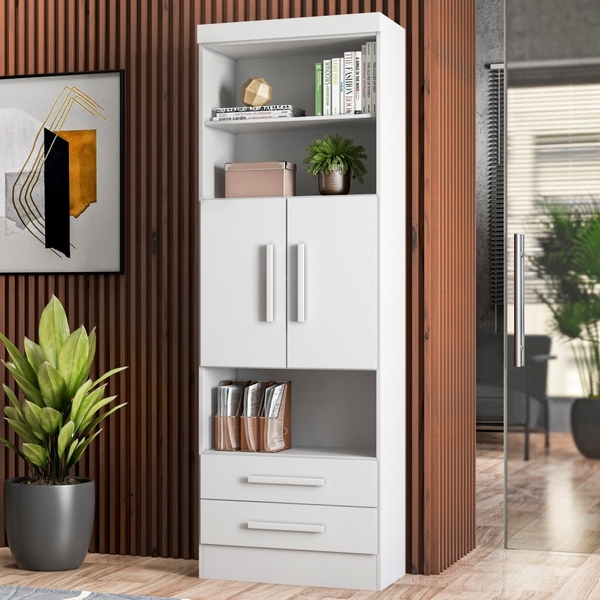Kit 02 livreiros eden branco os livreiros eden servem para guardar livros, organizar objetos e decorar o ambiente. tenha muito mais espaço para organizar seus livros e sua casa e deixá-la muito mais estilosa. kit de 4 pés acompanha o produto. as prateleiras são móveis. puxadores em mdf. informações do produto: altura: 183 cm largura: 61,6 cm comprimento: 35,4 cm informações complementares: material: mdp 12 e 15 mm cor principal: branco possui gavetas: sim (2) prateleiras: sim (3) portas: sim (2) itens inclusos 02 livreiros. kit completo para montagem, manual detalhado de instruções para montagem. garantia: 3 meses contra defeito de fabricação. informações complementares: - fotos meramente ilustrativas do produto no ambiente. - verificar descrição e tamanho do produto antes da compra. - avaliar a mercadoria no ato do recebimento e recusar em caso de divergência ou avarias. - mantenha as informações de contato e endereço de entrega atualizados para entrarmos em contato caso necessário. - limpar com flanela ou pano macio seco, não utilizar produtos abrasivos, desengordurantes, álcool ou solvente. Não expor o produto diretamente à luz solar e à umidade. * sugerimos a contratação de um montador profissional para a montagem do produto. Não nos responsabilizamos por avarias causadas no ato da montagem. * não nos responsabilizamos pela montagem e desmontagem do produto no ato da entrega e devolução, assim como os custos gerados nestas situações. * a transportadora entregará o produto no andar térreo do endereço de entrega. * não nos responsabilizamos por subir escadas, corredores e elevadores ou transporte por guincho em apartamentos.