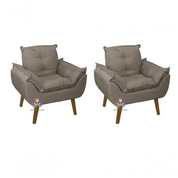 Kit 02 poltrona decorativa opala capuccino smf decorpoltrona opala agrega beleza e conforto. Produto com design moderno e luxuoso. Fabricada com produtos de altíssima qualidade, composto por pés quadrado de madeira de eucalipto, percinta elástica, grampo em aço galvanizado, t...