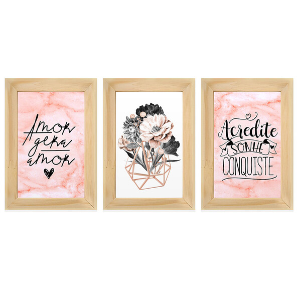 Kit 03 Quadros 10x15cm Moldura:pinus