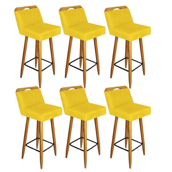 Kit 06 banqueta alta c/ encosto lith para cozinha bar balcão bistrô pé palito castanho suede amarelo - ahazzo móveisbanqueta lith - ahazzo móveis ideal para agregar elegância e sofisticação ao seu ambiente de forma prática e eficaz. Características: - largura: 38 cm; - altura...