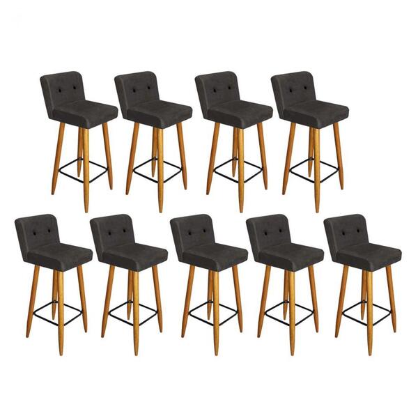 Kit 09 banqueta alta com encosto lana cozinha balcão bistrô palito castanho botão preto suede cinza -ahazzo móveisbanqueta lana - ahazzo móveis ideal para agregar elegância e sofisticação ao seu ambiente de forma prática e eficaz. Características: - largura: 38 cm; - altura: ...