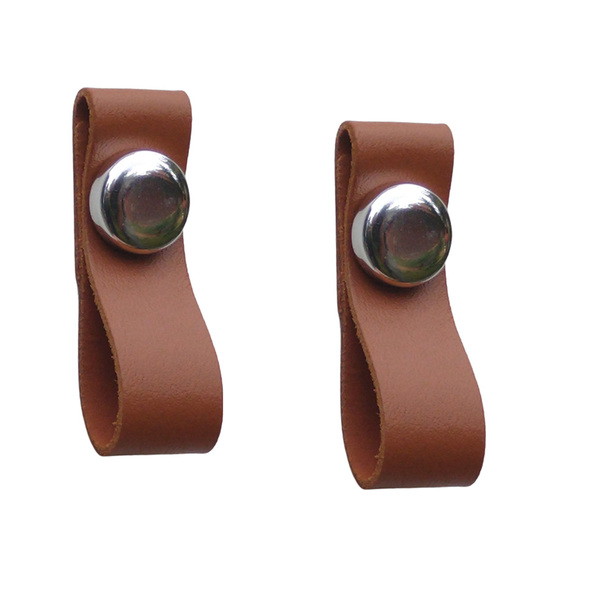 Kit 2 Puxadores Couro Caramelo