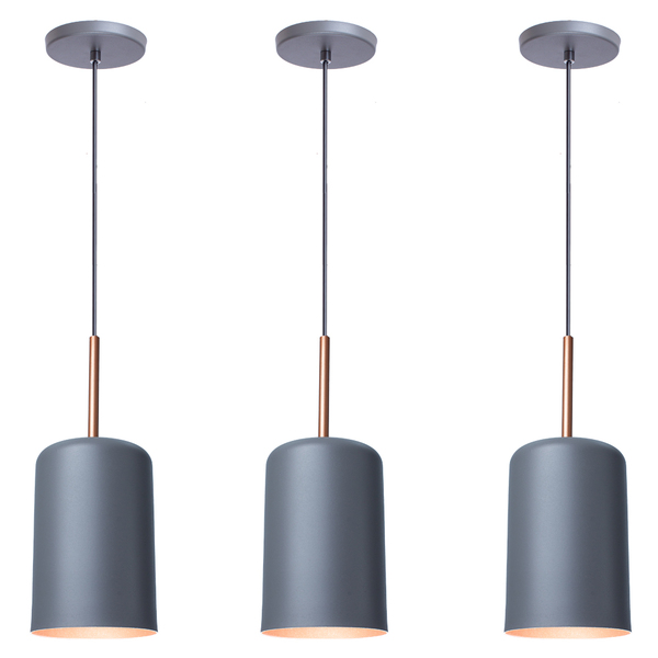 Kit 3 pendente lustre luminária veneza cinza   os pendentes são uma ótima opção decorativa e moderna, além de deixar a luminosidade mais próxima dos pontos que você almeja destacar, sendo ideais para iluminar mesas de jantar, bancadas na cozinha, mesas de escritório, quartos, lavabos e onde mais você desejar.   - material: alumínio - acabamento - pintura eletrostática - voltagem: bivolt 110/220v - soquete: 01 modelo e-27 - utiliza 1 lâmpada led, fluorescente ou incandescente - dimensões: altura 20 cm x diâmetro 13,5 cm x acabamento 15 cm - cabo: 1,5 metro (regulável) - canopla (acabamento para o teto): diâmetro 12 cm   não acompanha lâmpada