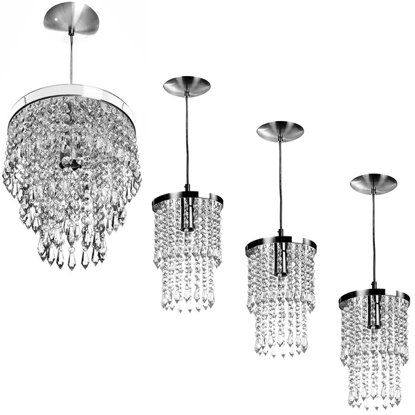 o pendente spark de cristal acrilico, adiciona luxo e sofisticação a sua decoração, sua aplicação é muito versátil podendo ser instalada em quartos, salas, varandas, corredores ou onde a imaginação mandar. Nosso pendente é feito em inox polido com cristais de acrílico de alto brilho, causando um lindo efeito luminoso, uma peça que vai fechar com chave de ouro a decoração do seu ambiente. É indicada somente para uso interno, utiliza 1 lâmpadas e-27.