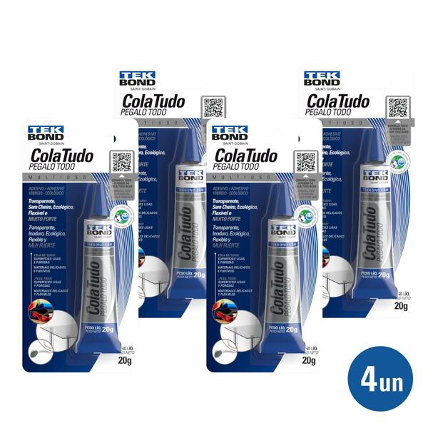 Contém 3 unidades da cola tudo multiuso 20g.sua versatilidade é incomparável: desde os substratos menos porosos até os mais porosos, a cola tudo mostra sua eficácia. Proporciona alta fixação em qualquer aplicação. Seu nome não é à toa! Além disso, sua fórmula transparente e sem cheiro permite uma aplicação discreta e confortável.projetada para resistir a impactos e vibrações, esta cola é ideal tanto para uso interno quanto externo. Pode ser exposta à água e aos raios uv sem perder sua eficácia. Livre de ácidos e solventes, é uma cola totalmente segura para aplicação em materiais delicados, sem comprometer sua integridade.cola tudo tekbond: perfeita para diferentes projetos e diferentes materiais.características e benefícios excepcional aderência, capaz de unir materiais de maneira duradoura; funciona perfeitamente em diversos tipos de materiais; livre de ácidos e solventes; não prejudica a saúde nem o meio ambiente; transparente; sem cheiro; resistente à água e aos raios uv; fácil de usar.modo de uso limpe as superfícies (retire qualquer resquício de óleo ou poeira); aplique o adesivo em uma das superfícies e junte as duas. Continue pressionando por cerca de 15 minutos; a secagem/resistência inicial ocorre em aproximadamente 2 horas. Leva 24 horas para secar totalmente; em aplicações verticais, utilize calços para evitar que o objeto deslize ou se afaste da área de colagem; para a colagem de materiais muito porosos, aplique a cola nas duas partes que serão unidas.atenção: a aplicação ideal deve ser feita em um ambiente com temperatura entre 5 a 45 c.