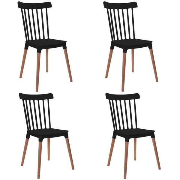 Kit 4 cadeiras windsor pretamodelo da cadeira windsor é um classico do design. Nesta versão o assento em plástico, em diversas cores, garante mais modernidade e exclusividade na decoração. Os pés são feitos de madeira haya o que torna ainda mais uma peça única e versátil.medi...