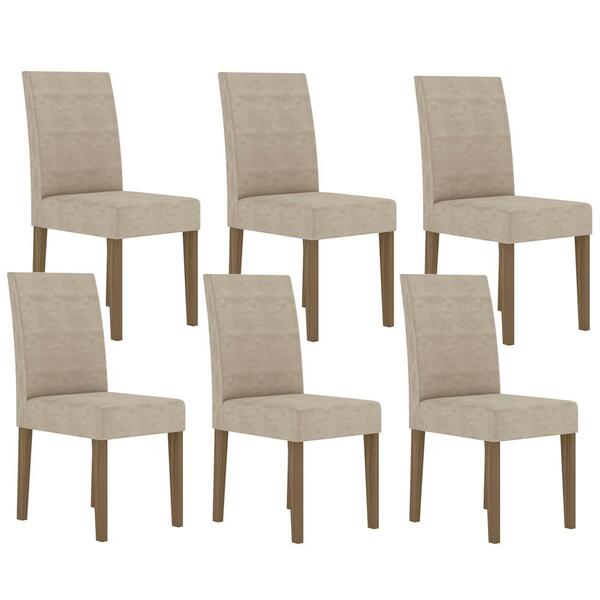 Conjunto de 6 cadeiras estofadas para sala de jantar. Projetadas para proporcionar mais conforto em seus momentos entre amigos e familiares. Possui estrutura em mdf, pés com acabamento em pintura uv. Assento com espuma densidade d.20 proporcionando excelente acomodação, reves...