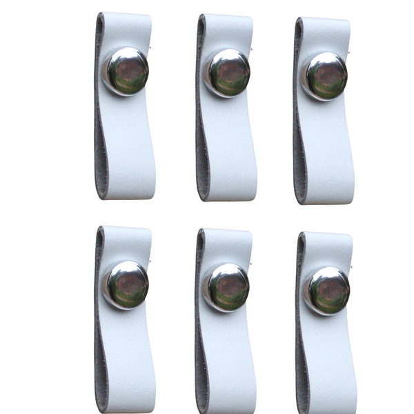 Kit 6 Puxadores Couro Branco