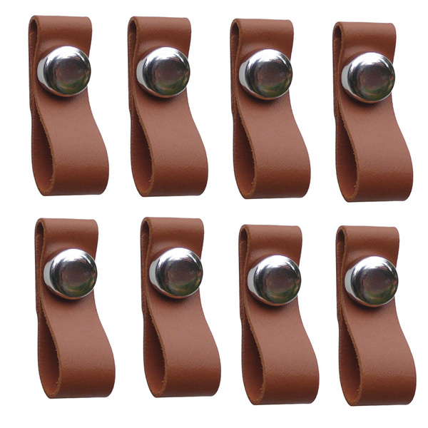 Puxador moderno em couro legitimo maior durabilidade e qualidade. Botão acabamento cromado. Segue pronto para instalação. Requinte e sofisticação na sua decoração.