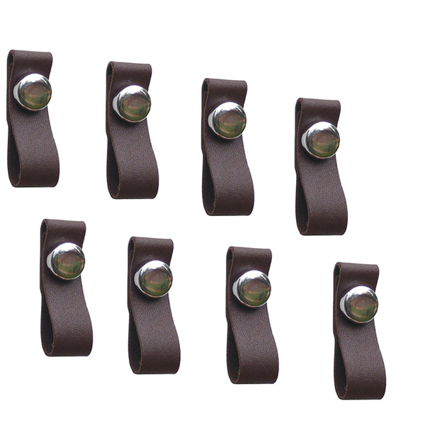 Kit 8 Puxadores Couro Marrom