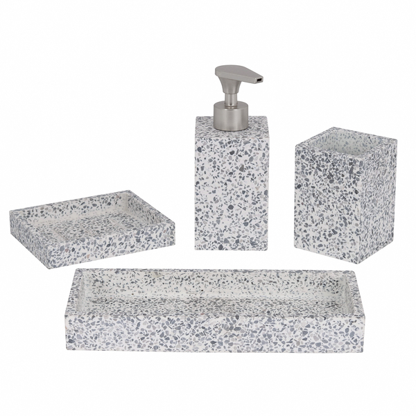 Kit Acessórios de Bancada para Banheiro 4 Peças Pedra Branco e Cinza Terrazo Sensea