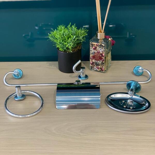 Material: Aluminio Cor: Cromado. Itens inclusos: Papeleira, cabide, porta toalha de rosto e porta toalha de banho, porta saboneteira Acompanha também: parafusos e buchas para instalação