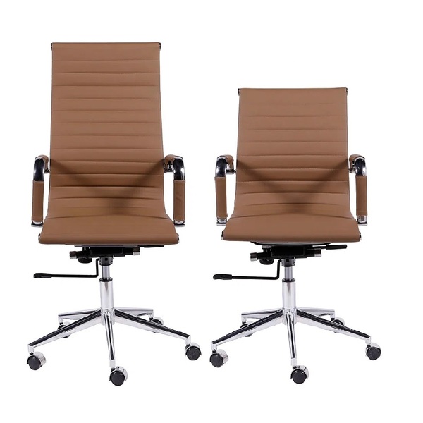 Kit cadeiras presidente e executiva couro   esta cadeira surgiu quando o casal charles e ray eames decidiram criar uma linha em alumínio. Como ainda não tinham peças para escritório, criaram a cadeira de escritório do famoso grupo alumínio eames.   • cadeira charles eames presidente esteirinha estofada couro medidas: altura total 104 cm à 113 cm - altura até o assento 40 cm à 50 cm - altura até o braço 61 cm à 71 cm - largura 55 cm - profundidade 52 cm especificações: cor: couro com braço. Itens inclusos: 1 jogo com 5 rodas; 1 estrela com acabamento; 1 pistão; 1 mecanismo de regulagem; 2 braços com capa; 1 encosto com assento; 1 kit montagem.   • cadeira escritório esteirinha charles eames giratória couro medidas: altura total 87 cm à 94 cm - altura até o assento 41 cm à 48 cm - altura até o braço 63,5 cm à 71 cm - largura 55 cm - profundidade 51 cm especificações: cor: couro com braço. Itens inclusos: 1 jogo com 5 rodas; 1 estrela com acabamento; 1 pistão; 1 mecanismo de regulagem; 2 braços com capa; 1 encosto com assento; 1 kit montagem.   • após a montagem, ela suporta até 120kg. • garantia de 3 meses sobre defeitos de fabricação. • seu assento estofado em pu oferece ergonomia e conforto. • para a limpeza, utilize um pano macio ligeiramente úmido. Envio: enviamos desmontados, com manual para fácil montagem.   quem somos: soffi possui um estilo moderno e sofisticado. Isso torna possível encontrar uma seleção on-line abrangente das melhores tendências em móveis. Levamos, por meio de uma compra segura, conforto e estilo através dos melhores marketplaces do brasil direto para sua casa e escritório. Dê ao seu lugar favorito um toque soffi com apenas alguns cliques.   * as imagens são meramente ilustrativas e podem variar em cores e pequenos detalhes dependendo da tela do seu computador, iluminação ambiente e até mesmo sua percepção visual. O sistema de alavanca em lotes mais modernos contempla somente uma alavanca.