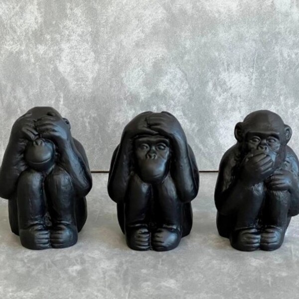 Kit esculturas macaco - 3 pcs para quem busca uma peça única e divertida para adicionar à sua decoração o kit esculturas trio de macacos sábios poliresina preto 3pcs é a peça perfeita. Feito em poliresina esta escultura apresenta três macacos em diferentes poses cada um...