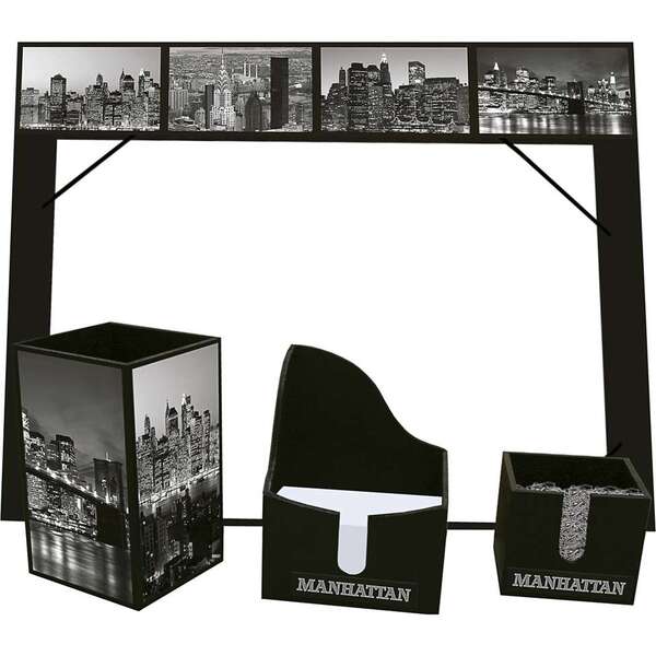 Detalhes do kit office manhattan 1 risque rabisque, porta lápis, porta clips, porta bloquinho o kit office manhattan é um produto extremamente funcional e com design diferenciado. impressione na decoração com esse porta-retrato. contém: 1 risque-rabisque, 1 porta lápis,...