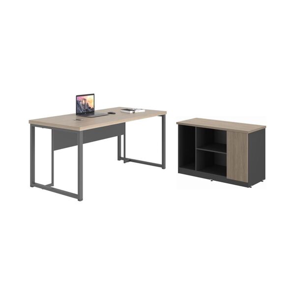 O conjunto de escrivaninha e balcão veio para facilitar sua decoração escrivaninha tampo em mdp bp 40 mm acabamento de bordas em abs de 1mm pés em aço 50x30 com pintura epoxi na cor preto balcão em mdp bp 15 mm, acabamento de bordas em abs tampo superior 25mm pés ni...