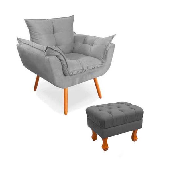 Kit poltrona opala com puff retrô decoração recepção suede cinzapoltrona opala com puff retrô é a melhor escolha para decorar a sua casa, com estilo inovador e moderno, é um empoderamento visual. Com elegância para preencher o ambiente de aconchego! Opala: o seu interior é es...