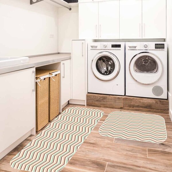 Kit tapete lavanderia abstrato único - características gerais do produto: cuidados: lavar a mão, nâo alvejar, não passar, secar à sombra, secar sem torcer, não usar secadora tamanho dos tapetes: - 1 tapete 40x80cm e 1 tapete 40x60cm tema: lavanderia tecido: 100% p...