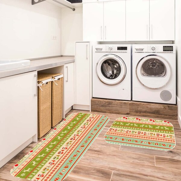 Kit tapete lavanderia basic natal único - características gerais do produto: cuidados: lavar a mão, nâo alvejar, não passar, secar à sombra, secar sem torcer, não usar secadora tema: lavanderia tecido: 100% poliester base: emborrachada antiderrapante estampa: di...
