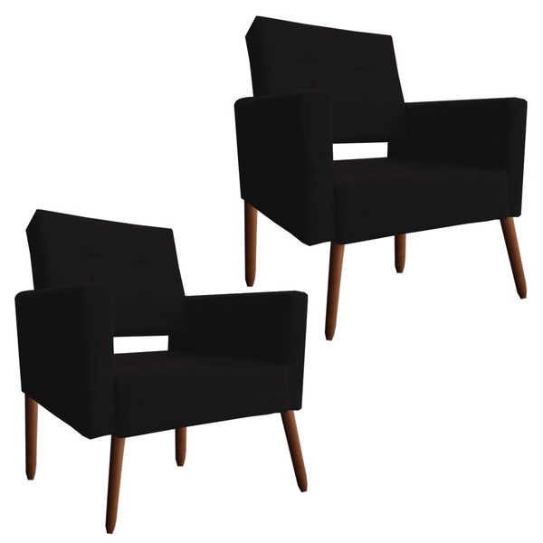 Poltrona vanessa kit com duas estrutura em madeira de reflorestamento. Madeira tratada. Pés em madeira de eucalipto tratado. Assentos em espuma d-28. Tecido: suede. Suporta até 130 kg produto desmontado: necessita montagem garantia: 03 meses contra defeito de fabricação dimensões: altura 85 cm largura 60 cm profundidade 60 cm as imagens são meramente ilustrativas não acompanhando objetos de enfeites e eletros; todos os produtos vão desmontados e embalados e contêm manual de montagem; ao receber o produto verifique as condições da embalagem, havendo alguma avaria não assine o comprovante de recebimento, entre em contato conosco para orientações; confira as dimensões do produto e certifique-se de que passarão normalmente por supostos elevadores, portas, escadas ou corredores de sua moradia; ficará a cargo do comprador a montagem dos móveis, que embora seja simples, recomendamos que seja efetuado por um profissional do ramo.