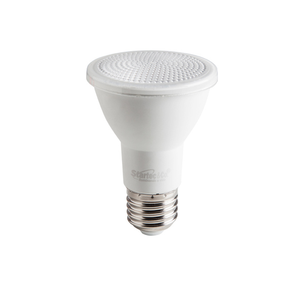 Lâmpada de led par20 6w base e27, bivolt.   fabricante: startec & co referência: 14458 potência: 6w temperatura de cor: 6500k (luz branca) lumens: 450lm vida útil: até 25.000hs ângulo: 38º uso: interno garantia: 3 anos contra defeitos de fabricação tensão: bivolt 127-220v código de barras: 7898292026289