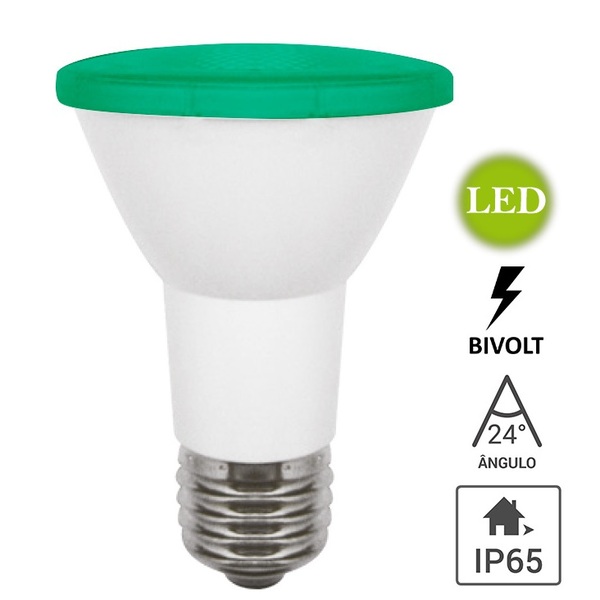 Descrição: Lâmpada PAR20 na cor verde, em LED gerando mais economia e durabilidade