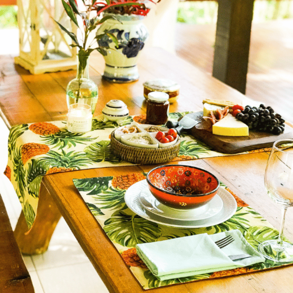 Os jogos americanos duplos são verdadeiros coringas na decoração à mesa pois são facilmente coordenáveis com diferentes formatos e materiais. auxiliam na proteção da sua mesa e dão destaque a sua louça. a nossa linha conta com produtos incríveis em diversas opções de cores e com detalhes. tudo para deixar o seu momento à mesa confortável e porquê não muito mais elegante.   - lugar americano confeccionado em tecido de algodão - cores: estampa abacaxi verso   terracota - dupla face - dimensões: 45x35 cm -peça unitária