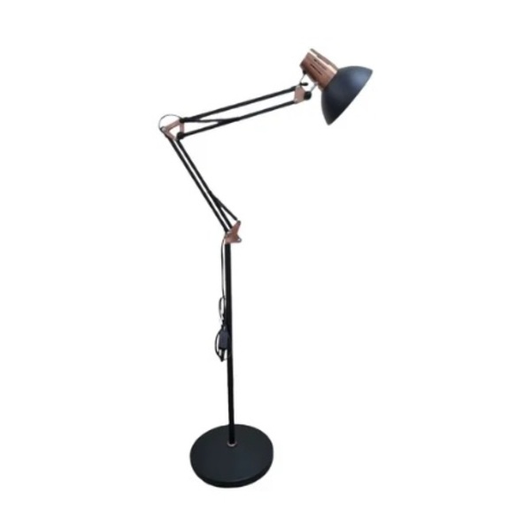 características: - duas funções : bancada e pedestal - função pedestal com regulagem na altura : 110 cm-145cm-180cm - diâmetro do abajur: 16 cm - diâmetro da base: 27 cm - braço articulável: 35 x 35 cm - voltagem: bivolt (escolher lâmpada de acordo com a voltagem de sua região) - material do corpo: metal - material da garra: plástico - cor: preto com acabamento cobre - pode ser usado com lâmpada tradicional ou de led - potência máxima da lâmpada: 60 w - comprimento do fio: 1,5 m - dimensões de envio: 15 x 31 x 45 cm - peso de envio: 4,5kg