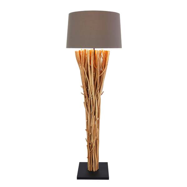 luminária de chão, para ornamentação e iluminação, com soquete para lâmpada comum (e27), tensão 110v-240v, base de madeira natural e cúpula de cor marrom, referência 210159/s/550020.   medidas do produto