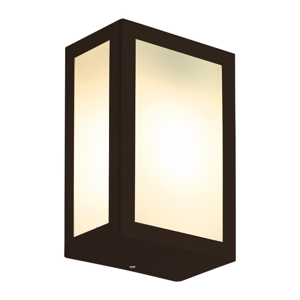 Arandela retangular marrom a arandela retangular é bastante versátil, podendo ser instalada em qualquer local da casa, produzindo um lindo efeito luminoso que valoriza o ambiente. embeleze o seu ambiente com um design incrível. arandela retangular em alumínio com vidro plano jateado. dimensões do produto: altura: 19,5 cm largura: 13,5 cm profundidade: 8 cm