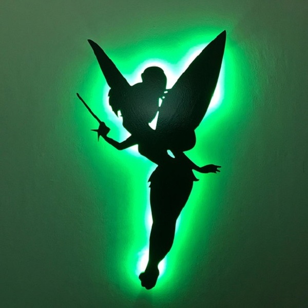 Luminoso de parede decorativo sininho  contém chave liga desliga funciona a pilhas aa (não inclusas) dimensões 45 x 30 cm mdf verde led verde instalação: pendura como se fosse um quadro. observações: - este item não é um brinquedo. Uso exclusivo para decoração. - indicada para uso interno, não resistente a água.