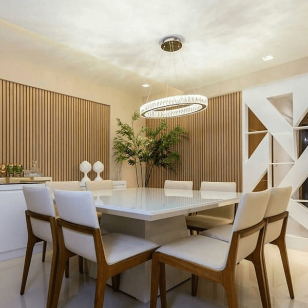 Lustre bella aura na cor cobre em led com 60cm de diâmetro. pendente em cristal e metal material: cristal e metal cor: transparente | cobre lâmpada: 64 x 0 5w potência: 32w temperatura de cor: 3000k medidas: ø60cm x 160cm tensão: bivolt