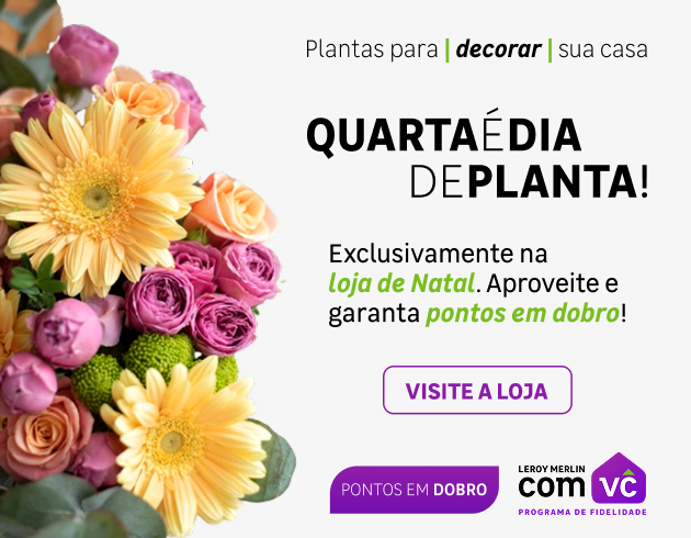 Na Leroy Merlin Natal, clientes cadastrados no programa de fidelidade ganham pontos em dobro nas compras de plantas. Aproveite para deixar sua casa mais verde e ainda acumular mais benefícios. Promoção válida nas quartas-feiras de março: dias 11, 18 e 25.