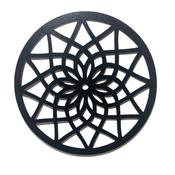 Mandalas cortadas a laser em MDF 3mm na cor preta semi brilho, tamanho de 50cm de largura por 50 cm de altura. Instalação simples e prática: acompanha fita dupla face no verso do produto.