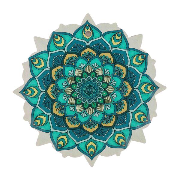 A palavra mandala significa "círculo" em sânscrito e é considerada como um símbolo de cura e espiritualidade. Para os hinduístas e budistas, a mandala ajuda na concentração da prática meditativa e é comum encontrá-la nos templos dessa religião. É um centro de energia. Dimensões: altura 2,5cm x largura 60cm x profundidade 60cm. Material: Cerâmica com cortiça na base - vem com furo para pendurar.