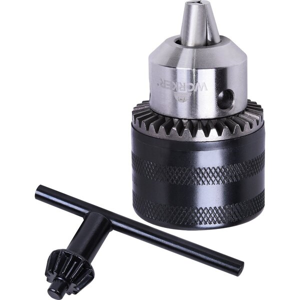Mandril 16mm b18 - worker - - indicado para furadeiras manuais e estacionárias; - capa de aço estampado; - castanhos temperados; - acompanha 1 chave. características gerais do produto: tamanho: 5x10x10cm 0,2kg garantia: 6 meses
