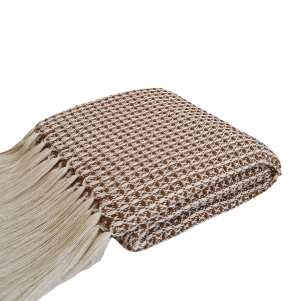 A manta bella é feita em algodão e tem uma trama com pequenos detalhes. Combina com varios tipos de ambiente. Pode ser usada para nos aquecer nos dias frios e, ainda, servir como peça de decoração no sofá e nas poltronas. Pode, ainda, ser combinada com almofadas e dão um toque de conforto e aconchego no inverno.